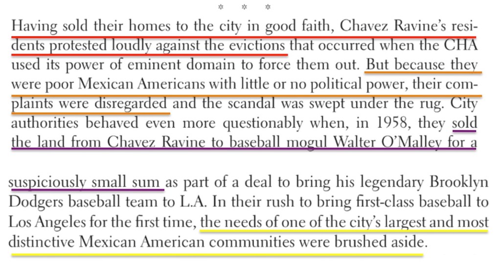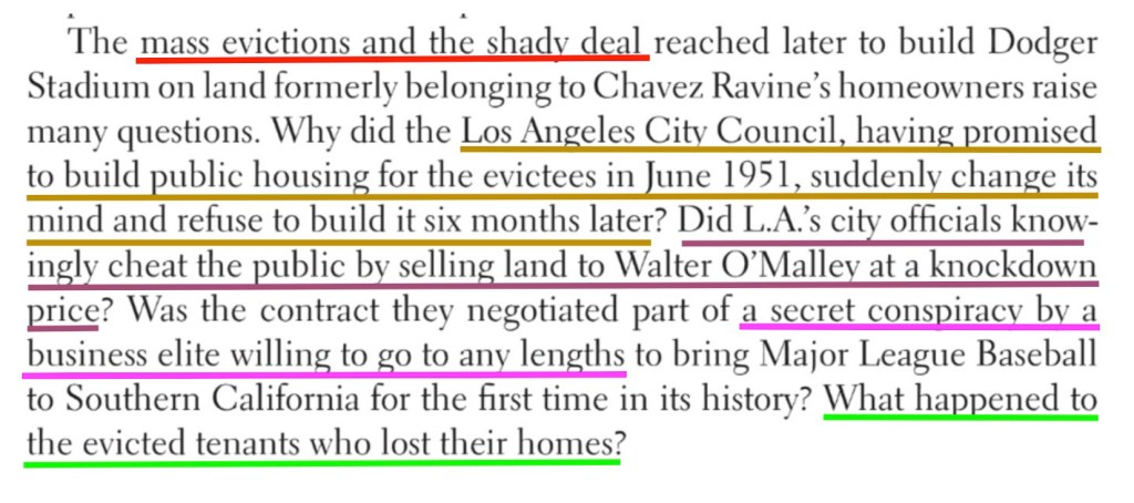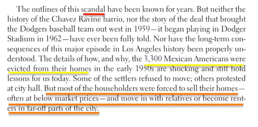 The Chavez Ravine story has about a million moving parts, and I could go on, but instead let us move on to —