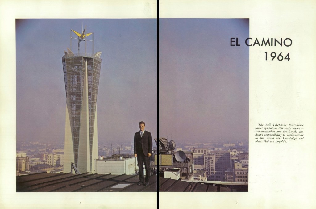 For reasons now lost to me — I spend way too much time falling down internet rabbit holes — I came across the 1964 Loyola High School yearbook, on classmates.com. Their theme that year was “Communication” and as such begins with this sterling image: