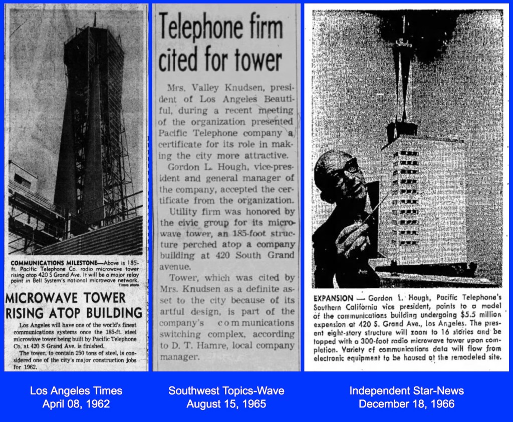Which is, of course, the tower atop the Bell Telephone building at 420 South Grand Ave. Isn’t this an incredible shot? In LIVING COLOR!