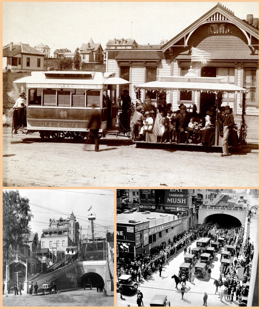 Thus a central part of the story of Bunker Hill—which blossomed largely due to the railroad—is how it reacted to and was morphed by the horse-cart, the streetcar, and the auto. Technological progress both avoided and penetrated the Hill, isolating and integrating it, in unusual ways inconsistent with the development of greater Los Angeles.