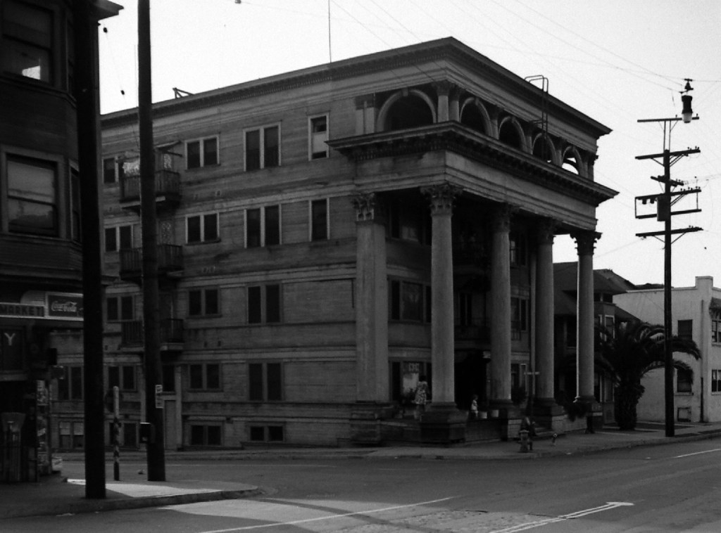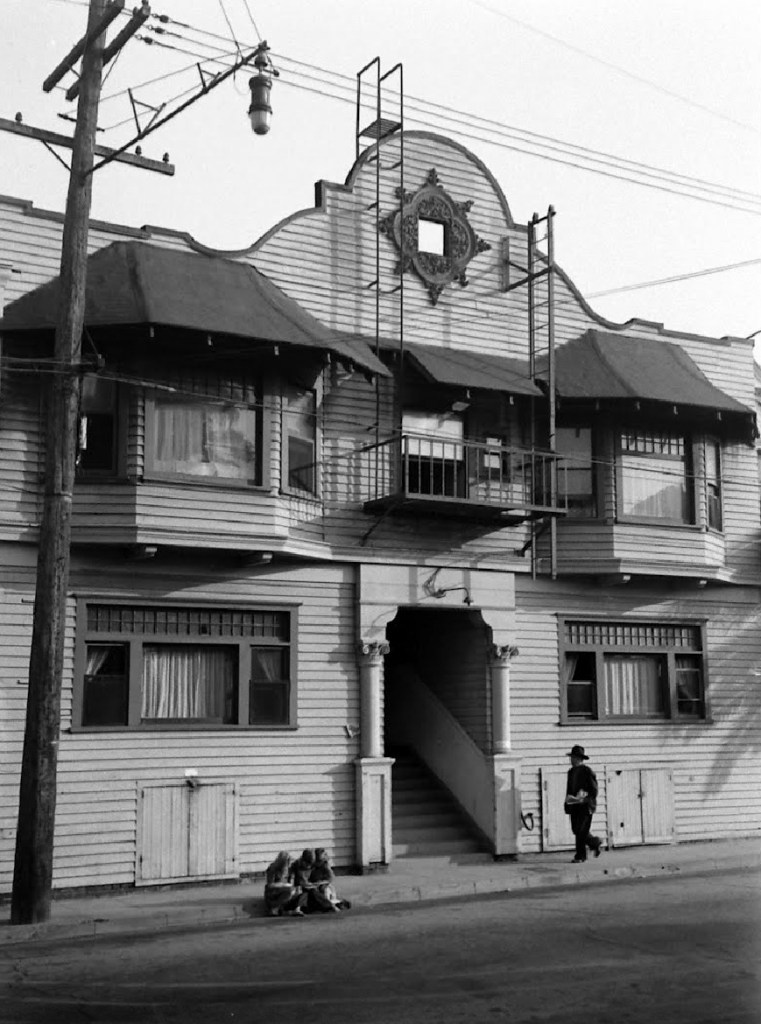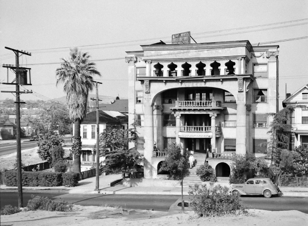 The Majestic, AKA the Rossmere and the Lima Apartments, in a very dim capture. I’ll grant you it looks rather forlorn here, ugly by 1945 standards (moreso given the dreary lighting), but would we pronounce it so…today? I think it’s a rather remarkable building. It was shot by nearly everyone, from Dickerson in its early days to Palmer Conner and George Mann near the end; I wrote about it here (and here) and it gets a full-page spread in Bunker Hill, Los Angeles.