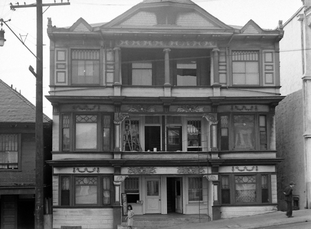 Zelda Best Keel had married Fred Gibson in Ohio in 1898; they came to Los Angeles and built the Gibson, at 635 West Fourth St., designed by Zelda’s brother Jesse Reece Keel, in the fall of 1903. She then married Harvey La Chat in April 1907 and they built the Zelda in 1908, also designed and built by the J. R. Keel & Co. She, her brother and their families all lived and died in the Zelda, though they, perhaps fortunately, did not live to see its end. The widening of Fourth Street for the freeway cut took out both the Gibson and Zelda, in the summer of 1954.