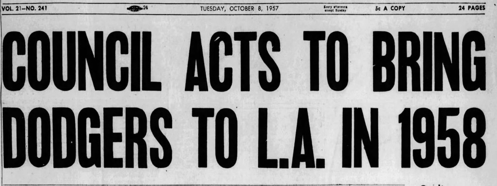 2 thoughts on “Chavez Ravine, Pt. V: Here Come the Dodgers