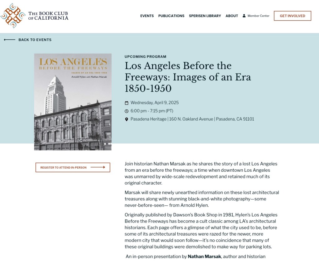 Postscript: we had a GREAT turnout! I want to heartily thank the Book Club of California, and the good folks at Pasadena Heritage.