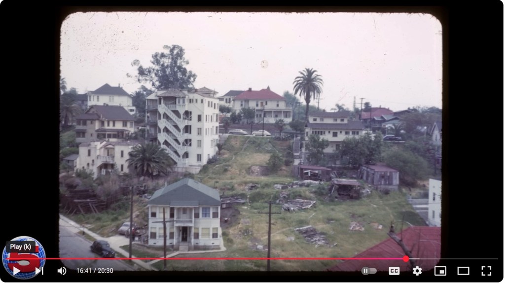 16:45 “or sold to movie studios in the Valley… Universal Studios also has some on their set…they used, what was that movie, To Kill a Mockingbird? To Kill a Mockingbird. The house that Finch was in, that was from Palo Verde.” Nope. This is one of most oft-repeated fantasies (Buried Under the Blue has also claimed that film was shot in Chavez Ravine). I mean, aren’t we constantly told that the “last houses in Chavez Ravine” were demolished in May 1959? To Kill a Mockingbird, the book, didn’t even come out until July 1960!