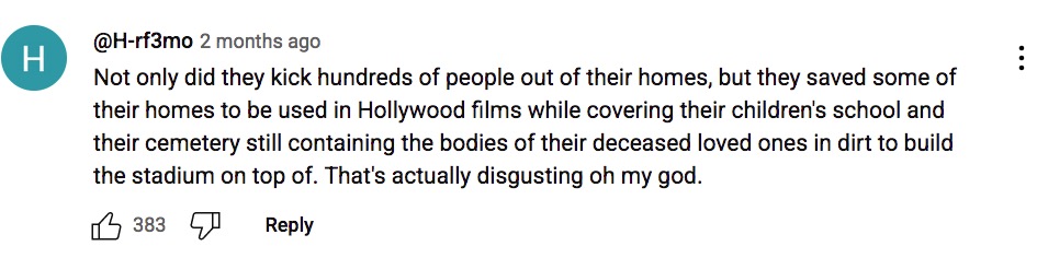 Which is ultimately the issue with the dominant Chavez Ravine narrative. You can get 887,000+ views if you peddle deceptive sophistry, which results in folks in full fits of righteous indignation, like this YouTube enjoyer: