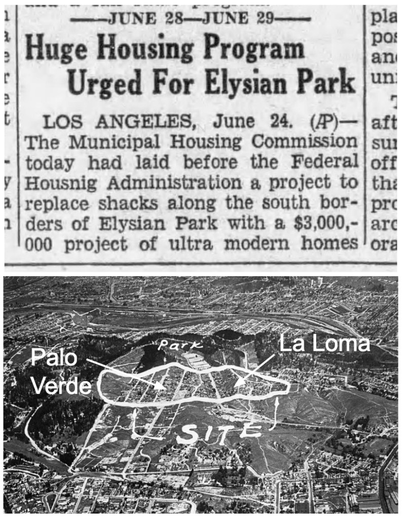 First of all, Callaghan is saying the communities had a downturn because of…World War II? Um, the area was planned for total redevelopment in 1935. The Municipal Housing Commission produced many images of Chavez Ravine’s substandard shacks, and urged redevelopment, and depicted the type of modern homes with which they were going to replace Chavez Ravine’s residents.