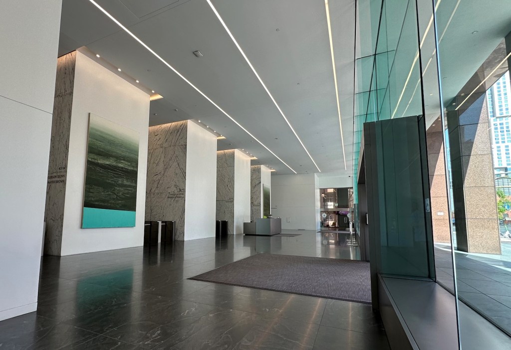 Let’s talk the lobbies of Bunker Hill! Of course there’s no returning to the Melrose or Trenton or Fremont, so you’ll have to content yourself with the modern lobbies of post-redevelopment Bunker Hill. You’ve likely been inside some of Bunker Hill’s more important and sublime interiors, like the Music Center; other lobbies are well-documented online, like the Bonaventure; or were one of the few to appear in Marsak’s Guide to Bunker Hill (e.g., the O’Melveny & Myers Tower).