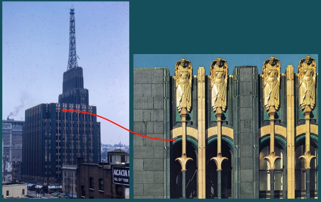 —but what do you notice about these edifices? Pretty standard Beaux Arts massing, all rough-hewn stone and neoclassical decorative elements. Sure, the California Petroleum Building has a setback tower, but it’s still replete with Spanish Gothic ornament.