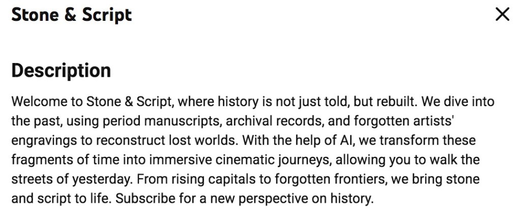 Before I pontificate further about AI, though, let’s set the stage, and see what in particular the shoddy sloppers makin’ shoddy slop have been up to. Few months ago a new YouTube channel emerged, called Stone & Script.