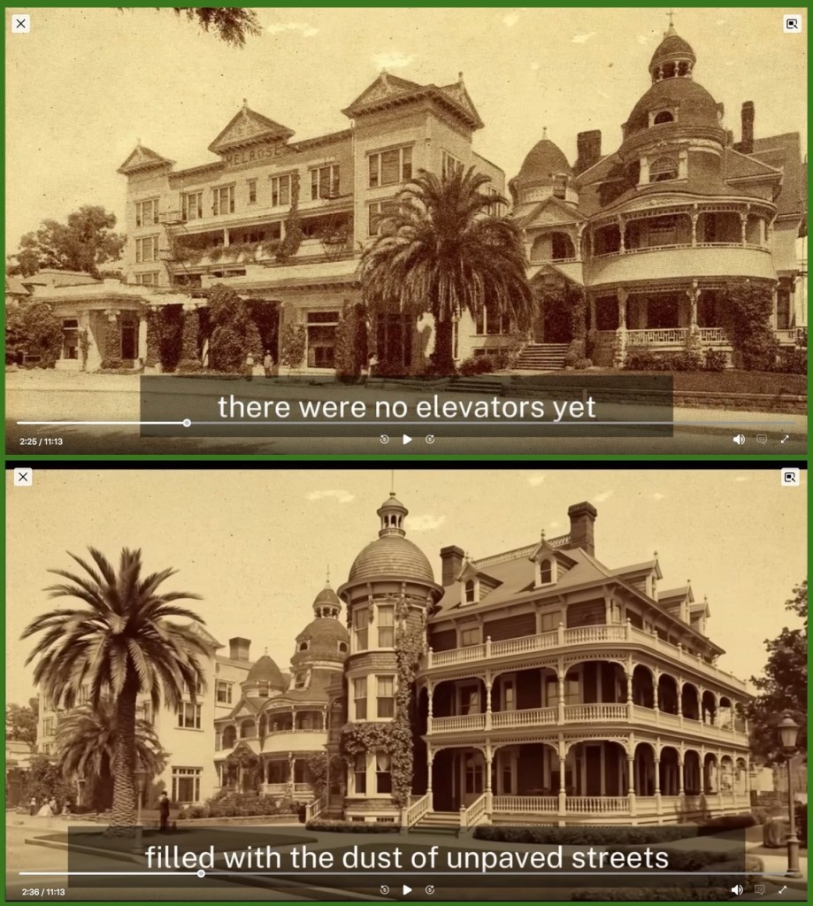 But this one is a fulsome festival of AI, dealing with not only Bunker Hill, but the built environment of Victorian-era Los Angeles in general. You may recall I recently published an entire book about just that subject, so, forgive me if I find this AI escapade of absurd and foolish drivel especially irksome.