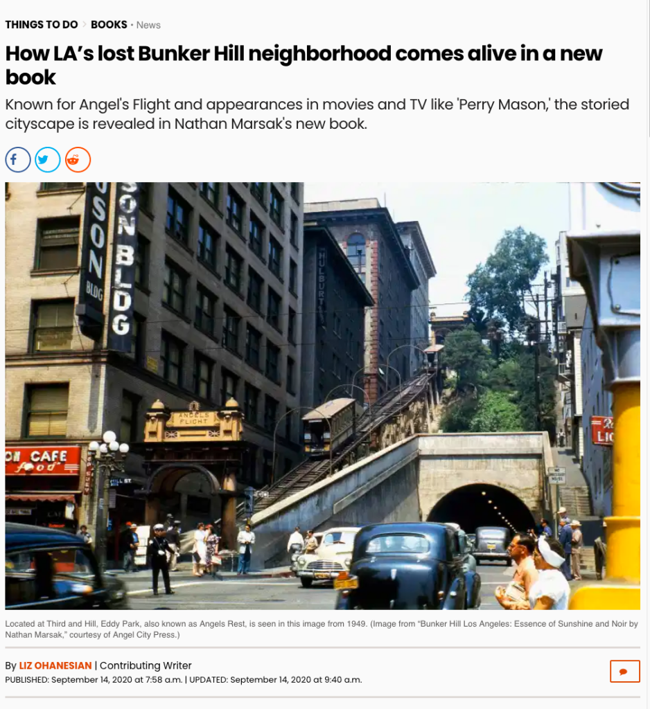 The architectural landscape of old Bunker Hill, before being bulldozed in the 1960s and redeveloped, is often thought of as only filled with florid Queen Anne Victorian houses and sprawling clapboard Edwardian apartment buildings. But it was much more than that—there existed Art Deco, Late Moderne, and Modern structures intermingled among the gingerbread, too. In this presentation, developed specially for the Art Deco Society of Los Angeles, historian Nathan Marsak will take you up onto pre-redevelopment Bunker Hill to investigate some of the demolished treasures built between 1925-1955 that once stood in Los Angeles’s first suburb.